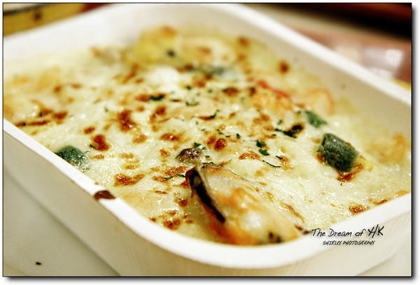 海鲜焗饭,配了罗宋汤。(迪士尼 皇室宴会餐厅)