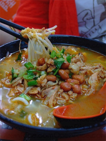 女友点了辣度不大突出的麻辣鸡丝米粉,以花生、芽菜、青葱粒衬托的麻辣汤底尚算浓郁,鸡丝份量甚多,是可以一试的。