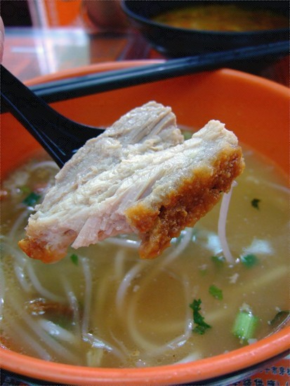 此店最驰名的必定是绝代双猪米粉, 所谓绝代双『猪』,是指脆皮猪腩肉及卤水猪颈肉,前者据闻以优质靓猪秘制而成,重点在於炸猪皮即使浸在上汤内也不变淋,入口奇脆无比,这卖点做对了一半,只可惜猪腩肉即使相当肥,咬下去感到一口肥腻,实在不易多吃;猪颈肉则以卤水炮制,肉质虽然嫩滑,可惜卤水味并不突出,有失惹味,个人对此不太喜欢,猪颈肉始终都是炭烧的好。这里的桂林米粉跟一般市面吃到的米线一样粗身,入口的确颇滑溜,唯清汤底被猪腩肉弄至非常油腻,油份浮面影响了观感卖相,建议店方应该将双猪另上,就可解决此问题了。