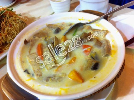 接著是香苗炸面, 狠大一碟, 炸面狠脆, 是咸咸的, 裡面还有一些炸肉, 加上一些香苗, 整个感觉不会太油! 之后是椰汁香芋鸡锅, 狠香, 裡面有芋头, 鸡块, 南瓜等, 芋头软硬适中, 鸡又滑又入味, 而南瓜是十分软熟, 椰汁是非常香浓的2 最后是荷叶香菇豆腐, 有一阵香香的荷叶味, 酱汁十分配这道菜, 香菇和豆腐又狠滑, 菜心都可以, 整个狠健康! 我们每人也叫了一碗饭, 这餐吃得很饱, 素食餐厅来说, 这裡算经济又好吃, 如果是素食者的你, 又怎麼可以错过呢??
