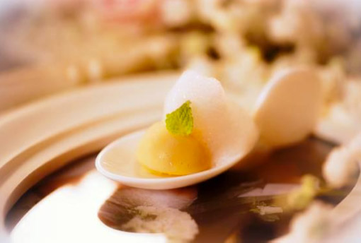 两款主菜,包括肉质鲜爽的“蓝龙虾配马铃薯泡沫及营养海藻”及令人回味的“慢煮和牛配啤梨龙蒿椰子泡沫”,将宾客引领进整晚的美食高潮。朱古力从来都是一顿浪漫盛宴的重要角色,这一回大厨特别为情侣们预备了“草莓白朱古力”。这顿创意晚宴将以小巧美点及咖啡或茶作结。