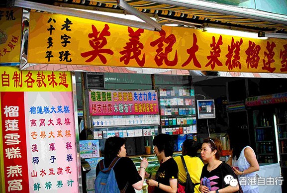 大良八记:要认识香港的甜品,大良八记必定榜上有名。此店的历史可追溯到上世纪40年代的广州,创办人均叔当时已在广州拥有两家甜品店,由于他是顺德大良人,家中排行第八,因此取名为大良八记。后来在上世纪50年代结束营业,来到香港辗转做过几份工作,终于在80 年代找到好搭档,决定重操故业,大良八记的招牌才得以重见天日。现在它已变成香港的老字号,鲜黄及鲜红色的招牌十分抢眼,店内环境干凈明亮,除了本地人之外,也深受内地及日本游客欢迎。地址:旺角通菜街109 号