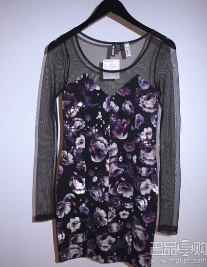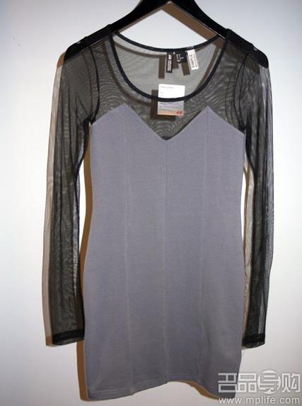 厚汗布短款修身连衣裙,袖部和抵肩透明面料。