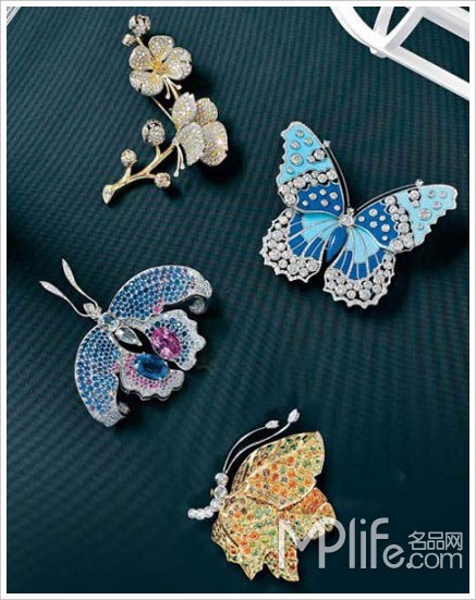 新系列首饰设计除以蝴蝶作为主题之外,也加入了形态同样优雅的飞蛾,飞蛾拥有榔头状触须,镶嵌钻石后外形线条更见修长。