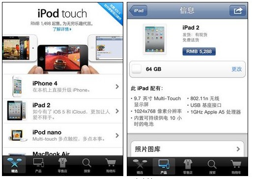 这个应用移植官方网站上的苹果商店,在这个应用中我们可以查看各类苹果产品的资料,看到合适的就可以直接下单,跟官网买东西一样,只需登录Apple ID就可以了,结账则是通过与Apple ID绑定的信用卡完成,所购产品将会送到用户Apple ID中登记的地址。一切都非常方便。