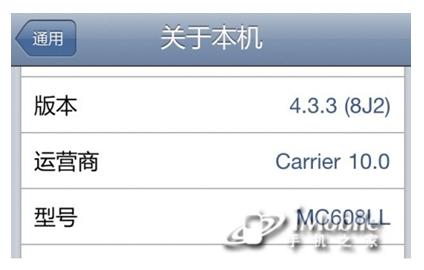 在iOS4.X以及最新面世的iOS5中,打开“设置-通用-关于本机”,会有型号这样一个栏目,其中会出现一些列的数字和字母,这些数字和字母就代表了这部iPhone 4S的的版本,或者说应该销往那个国家,这些数字中,第六和第七个字母是最为重要的,它们将会告诉我们很多关于这部iPhone的信息。这些东西是经销商想改也改不,最具有说服力的直接证据!