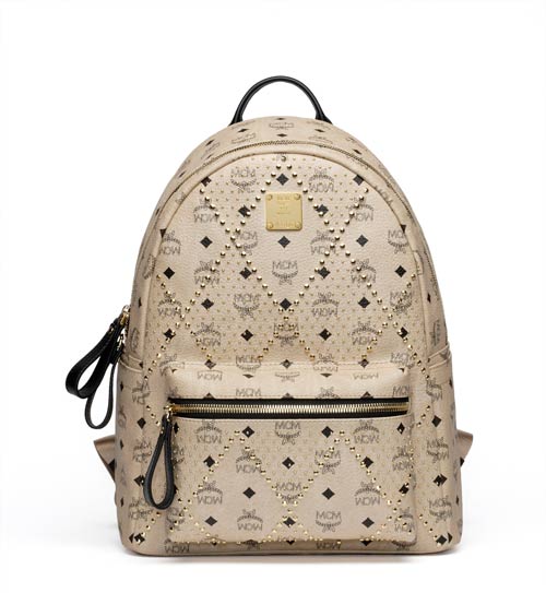 描绘出MCM的目标,在于为全球旅行者提供顶级工艺及价值精髓的奢华时尚配件。这个系列将铆钉与水晶娴熟运用,创造出独特的精妙图案。