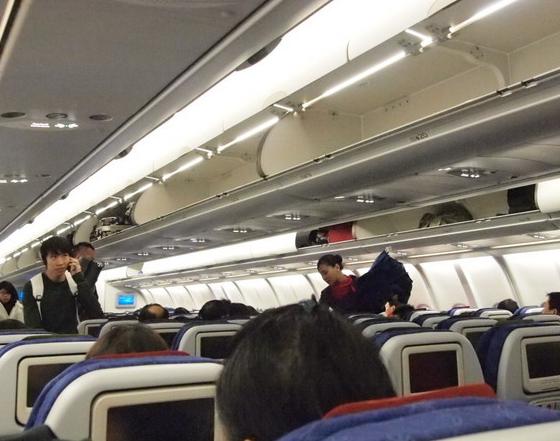 基本上准点登机,为了要靠窗户的座位,只剩下最后一排了。杯具。后面是厕所,座椅还不能往后倒一些。难受死了!貌似是飞机型号是737,没有电视可以看。