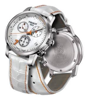 天梭骏驰200丹妮卡·帕特里克2011限量版是一枚高性能的计时码表。该腕表是名副其实的精准、坚固且品位一流的计时产品。无论是旋入式表冠,还是200米防水功能,都使得天梭骏驰200丹妮卡2011限量版非同凡响。表盘和计时圆盘上的刻度宛如赛车仪表盘般精密,计时指针和小秒针都使用了丹妮卡赛车上的颜色——橙色,动感十足,充满活力。此外,纤细的表壳、做工精良的表冠和耀眼的白色表带,都为在赛道上和男性比拼速度和智慧的女性平添了几份柔美气息。