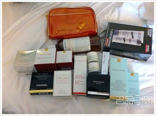 dfs购得部分化妆品,迪奥用卡85折,雅诗兰黛9折,娇韵诗85,香奈儿9,碧欧泉85,契尔氏85好像,其他记不得了~那个红包是买红石榴系列满1500送的。里面一个水、一个乳液、一个粉底。都是小瓶的~
