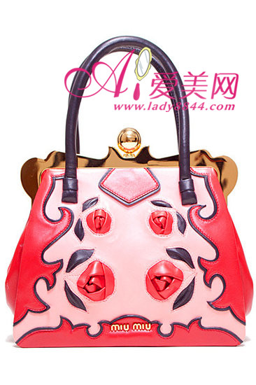 一直走少女路线的MIUMIU近日最新出炉的2012春夏手袋系列,让人屏息喔!精致又古典的设计,亮丽的色泽,立体的花朵图案装饰,包型优雅别致,流露出少女般的甜美活泼感。