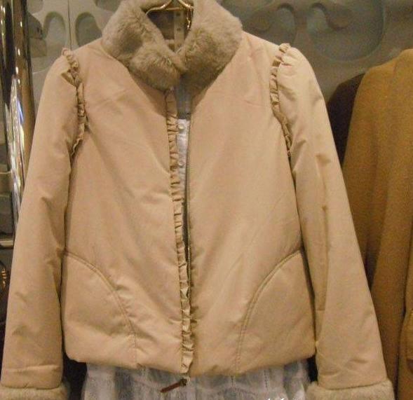 欧时力Ochirly2011冬季米色羽绒服,时尚的百褶肩设计,售价:799元