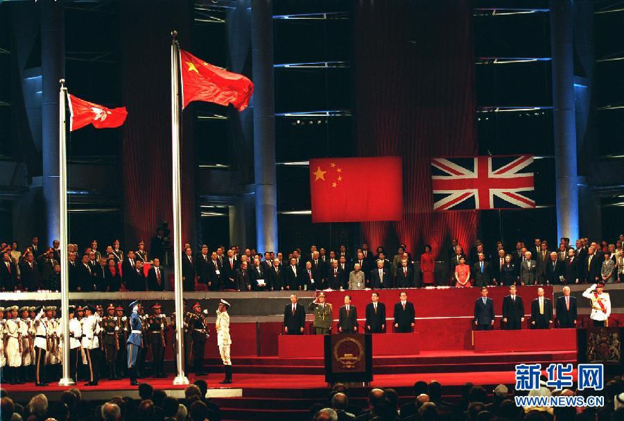 15年前的7月1日,一个全球目光汇聚的时刻,一个亿万国人感动的瞬间。分离一个半世纪后,香港终于重回祖国怀抱。时光荏苒,东方明珠栉风沐雨,始终光彩依然。回望15年,那些或喜悦、或悲伤、或激情、或凝重的瞬间,渐次浮现。叫人慨叹历史变幻的同时,也给了我们对于香港未来的无穷信心和期待。 1997:香港回归祖国 1997年7月1日零时,湾仔会展中心新翼五楼大会堂。雄壮激昂的国歌声中,鲜艳的五星红旗与紫荆花区旗,相伴冉冉升起。这是一个庄严的宣示:中华人民共和国恢复对香港行使主权,香港特别行政区正式成立。新华社记者刘建生 摄