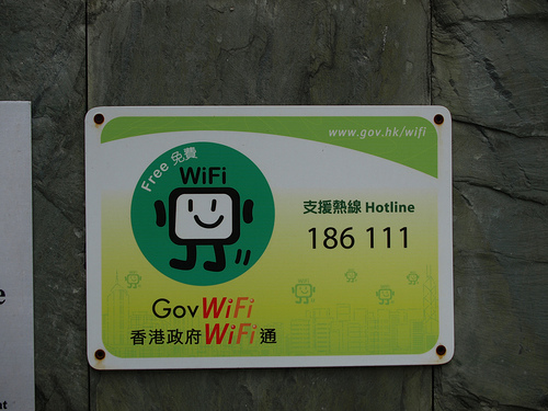 香港的情况也类似。香港政府支持推出的“香港政府WiFi通”2008年开始实行,该计划主要是在指定场所为市民和游客提供免费无线WiFi,用户只要启动手机和其他移动终端的WiFi功能,手动连接到这些热点,就能免费享受上网服务。提供“香港政府WiFi通”服务的场所均贴有以上的标志,这些场所包括公共图书馆、体育中心、文化及康体中心、熟食市场和大型公园等。