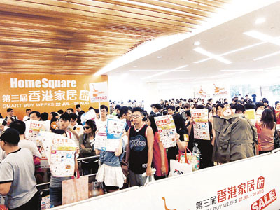 据香港文汇报报道,为期一个月的“第三届香港家居折”22日开幕,吸引逾100人通宵排队等候,场内过百所家居店均提供折扣优惠,部分更以“一折名牌家俬”、“100元品味家品”等作招徕。