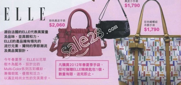 2012年最新ELLE包香港上市,凡购买2012年春夏季包包,即可获赠ELLE精美钥匙包1个