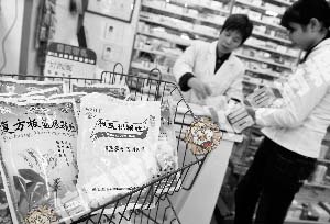 广州部分药店将板蓝根冲剂摆放在显眼位置。张斯燕 摄